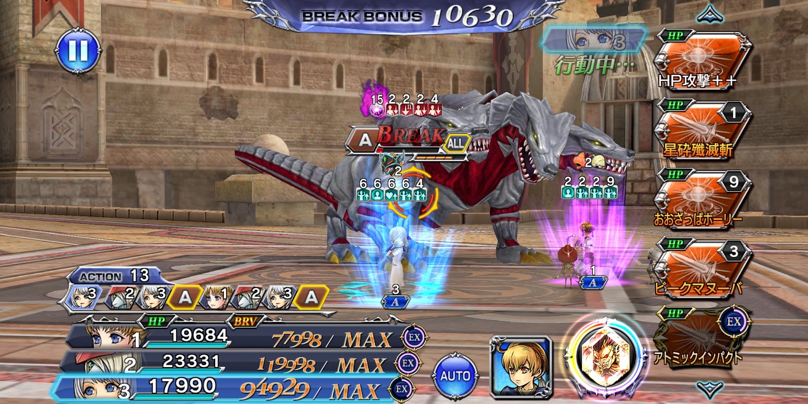 ガチャは無料はなにもなしで、プリッシュガチャをチケット300枚。 未所持のフランLDは2本出たけど、プリッシュLDは出なくてギブアップ。 コールも強そうだしなーと思って多めに引いちゃったけど、ちょっと多かったかも。 早速ルフェニア+に挑戦。 カウントがちょっとわかりづらいのでやってみて確認。 敵の行動多そうなので、強くなる前にシェルク使ってみることにします。 あとセリスとなんとなくヤシュトラで。 やってみるとカウントは、バハムート直前に行動するキャラだけ気をつければよさそう。 HP多いけどシェルクがペシペシ叩いてなんとか50%越え。 ここでカウントの挙動勘違いして撃沈。でも手応えありです。 HP多くて大変なのでヤシュトラをギルガメッシュに交代。 いつの間にかアルテマウェポンの素材が完凸分あったので、大剣を仕上げて持たせてあげます。 全員カウント対応できるけど、シェルクは敵の行動後の追加ターンだと、Aアビ→アビで連続行動すると、さらに無式のターンがまた回るので、ちょっと厄介です。 終わった後に落ち着いて考えると、Aアビ→コール→アビ→アビでよかったかな。 まぁなんかガチャガチャやって凌ぎました^^ 30%超えたところで、まさにシェルクのターンで詰んだので召喚。 シェルクをサポートのシスネに変えて、召喚あけにギルガメッシュBT。 シスネが倒しちゃいそうだったのでAアビでお帰りいただいて、無事シェルク入りのスクショ撮って倒せました。 シェルクのアビ全部使い切ったの初めて。 断章でどれくらい強くなってくれるかな。 アルテマウェポンは10月になったら解体して、シェルクとラァンレェン用に特殊を完凸させようと思ってます。
